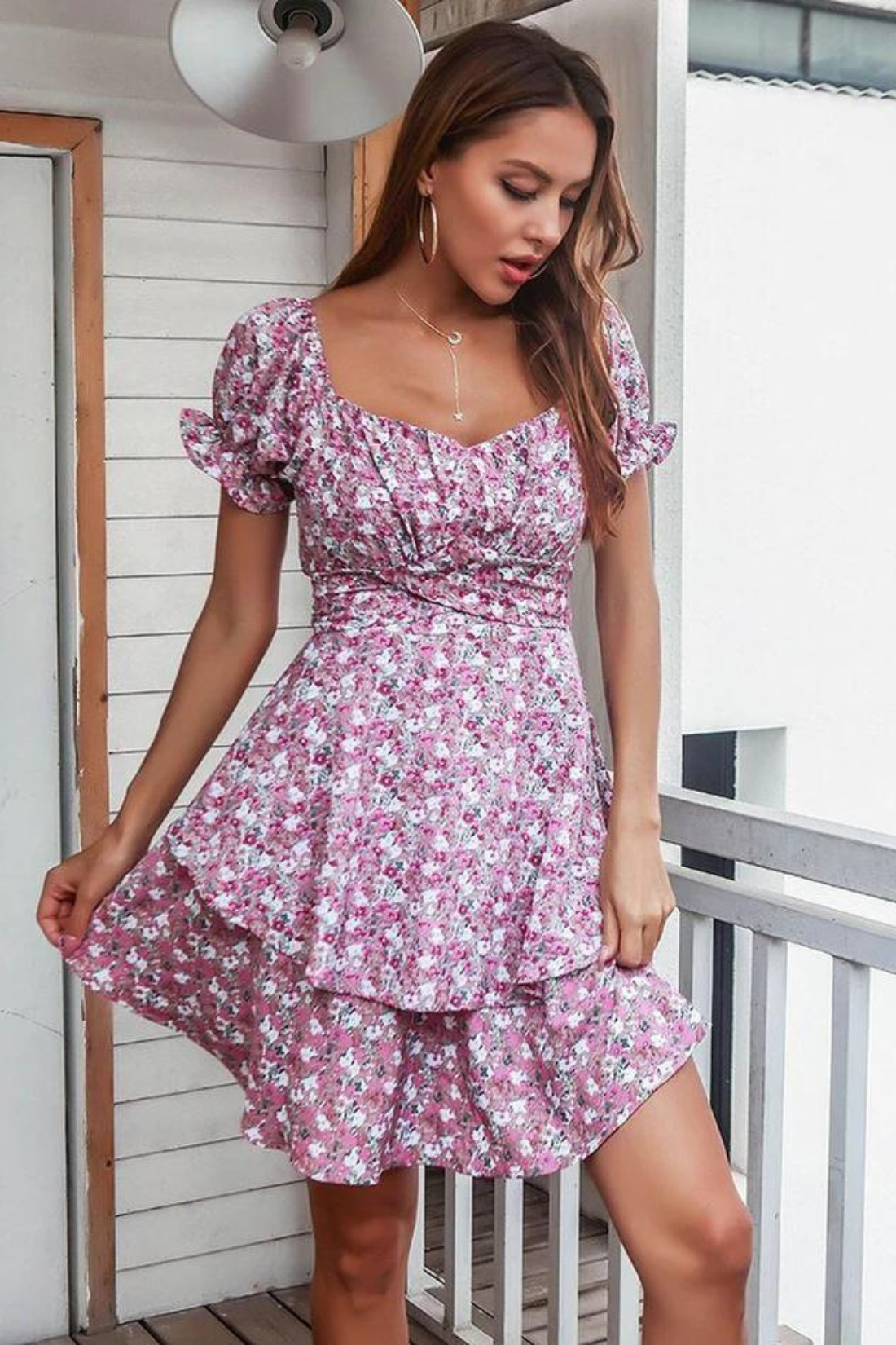 Cette robe demoiselle d'honneur champêtre courte est parfaite pour tous les événements printaniers ou estivaux que vous avez prévus ! La couleur claire et le motif floral lui confèrent un aspect champêtre et romantique, tandis que la jupe courte et évasée met vos jambes en valeur. Le meilleur atout de cette robe est son confort : la coupe trapèze est facile à enfiler et très flatteuse. Vous vous sentirez bien dans cette robe, quelle que soit l'occasion !